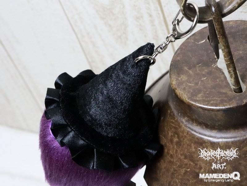 毛色と目玉をパープルに統一したボディに魔女の帽子を被せました。
